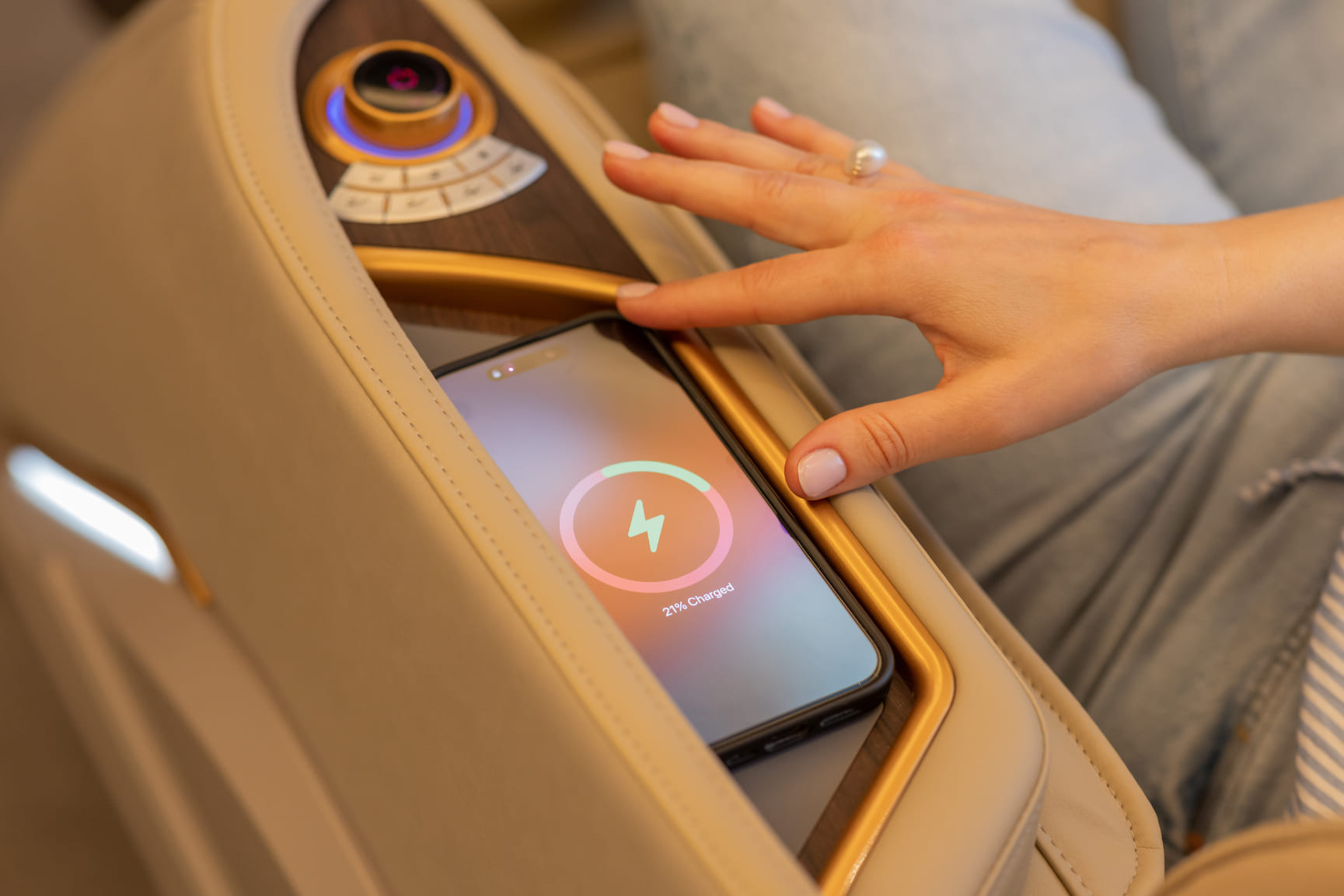 Масажният стол има опция за персонализиран масаж. В допълнение, с функцията за бързо зареждане на телефона, Вие се зареждате постоянно с енергия!