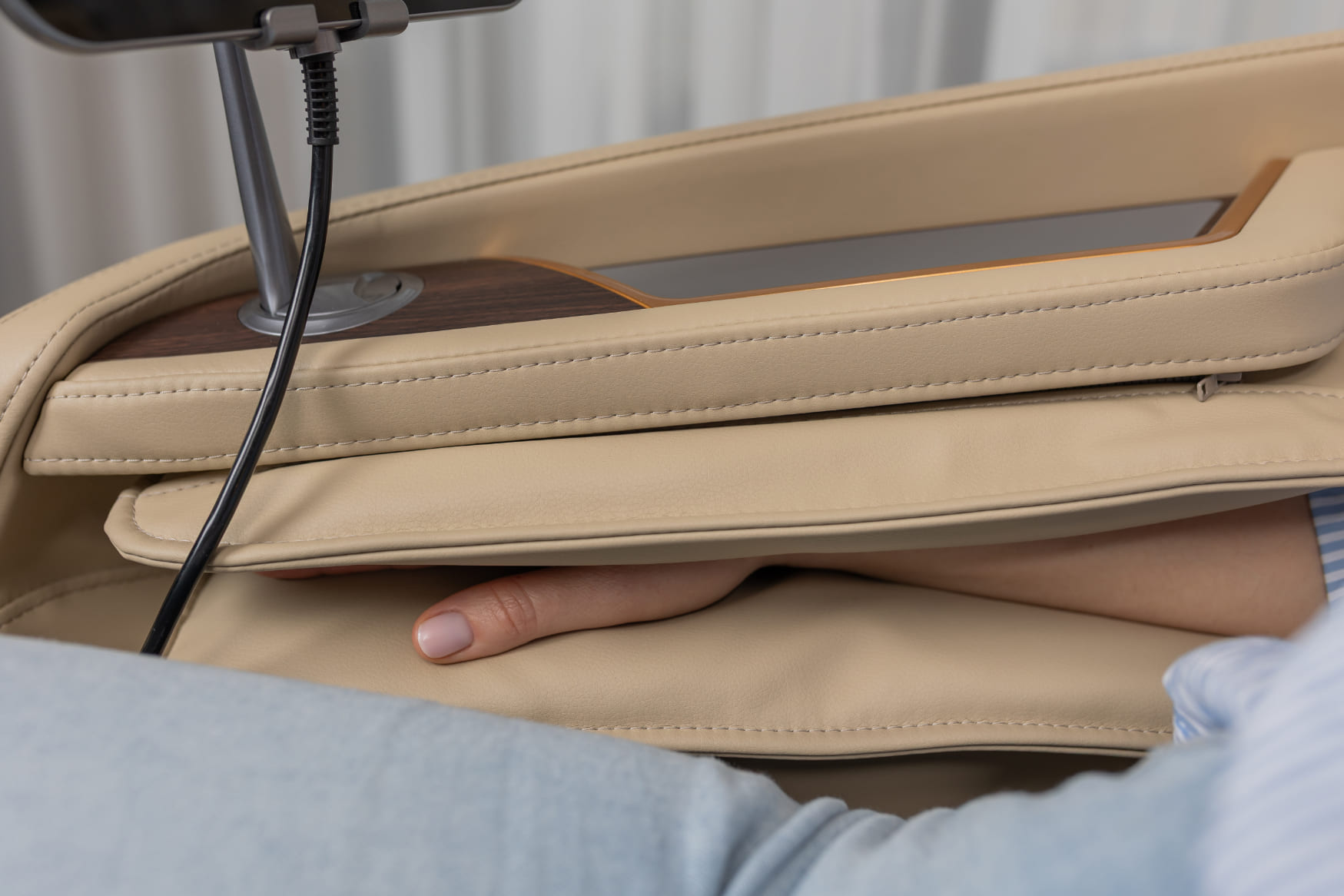 Цялото масажно изживяване може да се контролира с помощта на вградения контролен панел на лявата ръка на фотьойла.